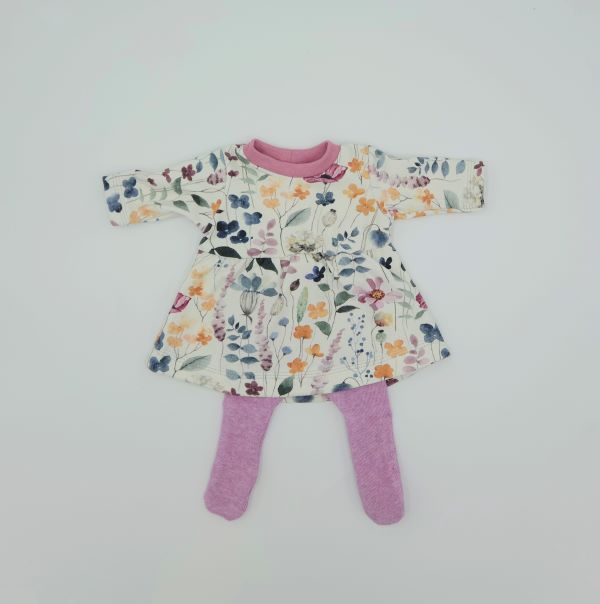Die Puppenkleider und Strumpfhose passen Puppen (z.B. Baby born) und können bei 40 Grad gewaschen und mit geringer Temperatur gebügelt werden. Die Stoffe sind nicht für den Trockner geeignet. Die verwendeten Stoffe bestehen aus 95% (Bio-)Baumwolle und 5% Elasthan.