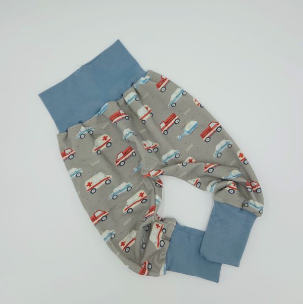 Durch das lange Bündchen passen die Hosen den Kindern über einen längeren Zeitraum („wächst mit“). Sie können bei 40 Grad gewaschen und mit geringer Temperatur gebügelt werden. Die Stoffe sind nicht für den Trockner geeignet. Die verwendeten Stoffe bestehen aus 95% (Bio-)Baumwolle und 5% Elasthan.